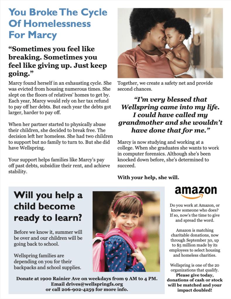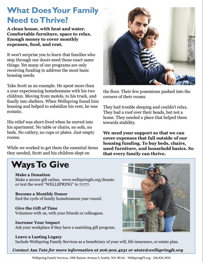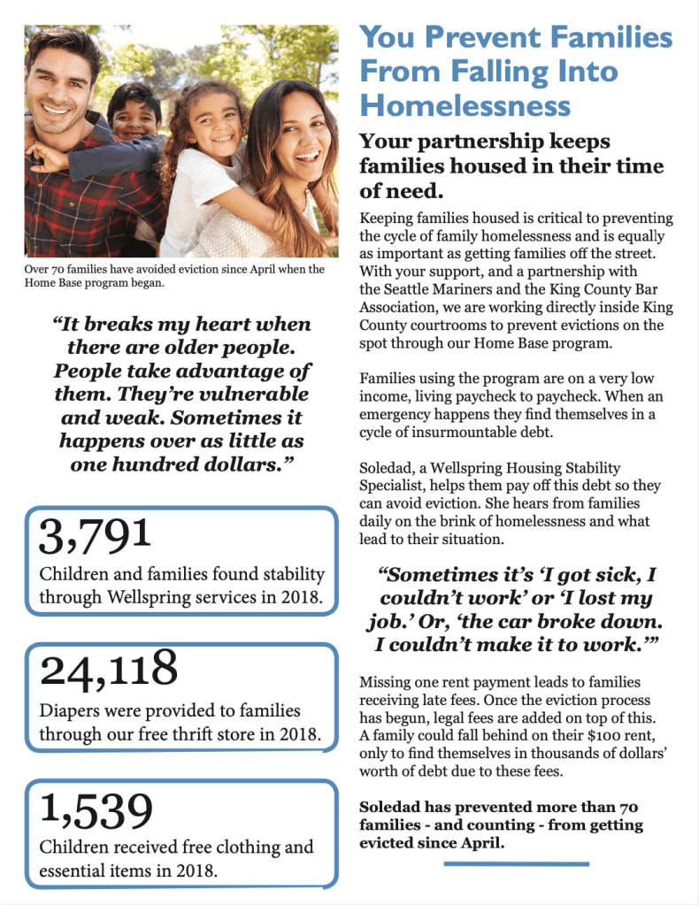 Another priority for me was to ensure the newsletter was raising funds effectively. With that in mind, I chose to have the first three pages focus on impact stories and the last page to focus on a story of an unmet need. People would read the newsletter, see that the nonprofit had done good work and then finally see that help was still needed. A donation envelope was included with the newsletter, allowing people to easily donate.